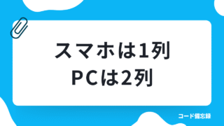 コード備忘録 【CSS】スマホ表示は1列、PC表示は2列にする方法(Flexbox+メディアクエリ) スマホでは1列、PCでは2列に切り替わるレスポンシブレイアウトをCSSで実装する方法を解説します。Flexboxとメディアクエリを使ったシンプルなサンプルコード付き。 2025.08.28 コード備忘録
